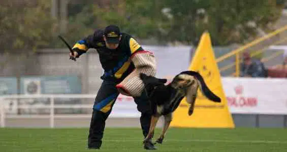 Ο εκπαιδευτής δημιουργεί εικόνες απειλής στον σκύλο, ώστε να αντιδρά σωστά και ελεγχόμενα σε πραγματικές συνθήκες.