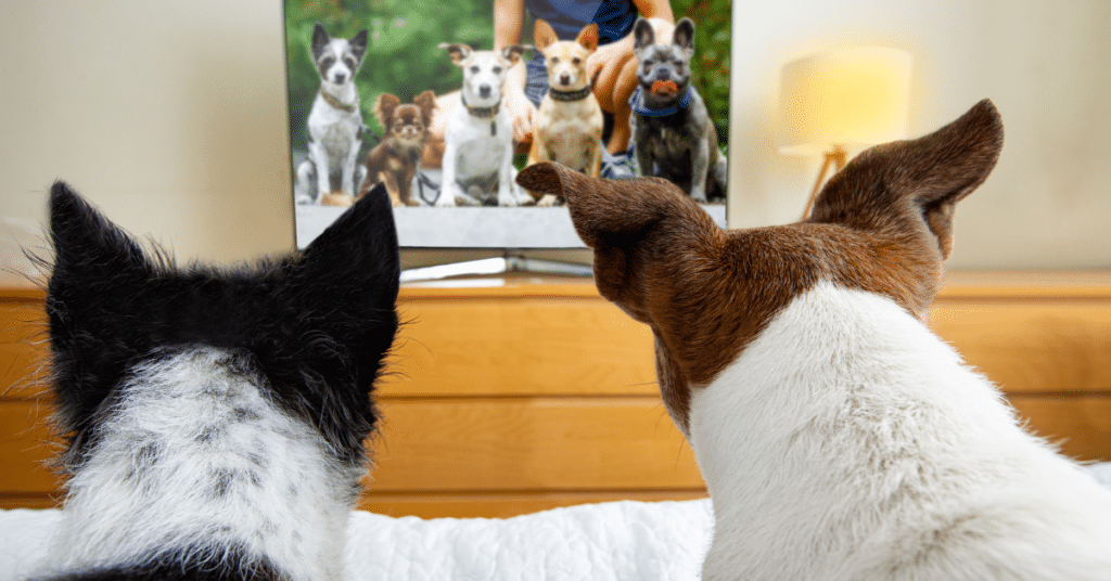 Για τους σκύλους, η τηλεόραση μπορεί να λειτουργήσει ως αντικατάστατο της ανθρώπινης παρουσίας σε κάποιο βαθμό. Αν και δεν κατανοούν την τηλεόραση με τον ίδιο τρόπο όπως οι άνθρωποι, η ύπαρξη φωνών και κινήσεων στο σπίτι μπορεί να τους καθησυχάσει. Αυτή η ψευδαίσθηση συντροφικότητας είναι ιδιαίτερα ευεργετική για τα κατοικίδια που βιώνουν άγχος αποχωρισμού.